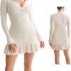 Womens Long Bell Sleeve Mini Knit Dress Flowy A Line Pleated Bodycon Crew Neck Elegant Short Sweater Dresses
